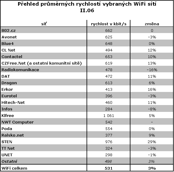 Na závěr se podíváme na dosahované rychlosti největších WiFi sítí.