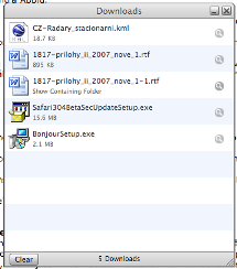 Za velmi příjemnou a užitečnou funkci považuji Private browsing. Po její aktivací budou na daném počítači smazána veškerá data o vašem následném působení na internetu prostřednictvím Safari. Konkrétně to znamená, že stránky nejsou ukládány do historie, stahované soubory se neukládají do listu stahování a informace vyplňované do formulářů včetně vyhledávaných hesel přes vyhledávací pole nejsou ukládány. Tlačítka Vpřed i Vzad fungují i nadále, ale po vypnutí se historie smaže.