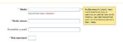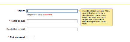Vlastní jádro zobrazování HTML stránek umožňuje také příjemné zvýrazňování aktivních polí formulářů, tedy když například vyplňujete nějaké informace při registraci, textové pole je na okrajích modře zvýrazněné. Jednoduché a přehledné.