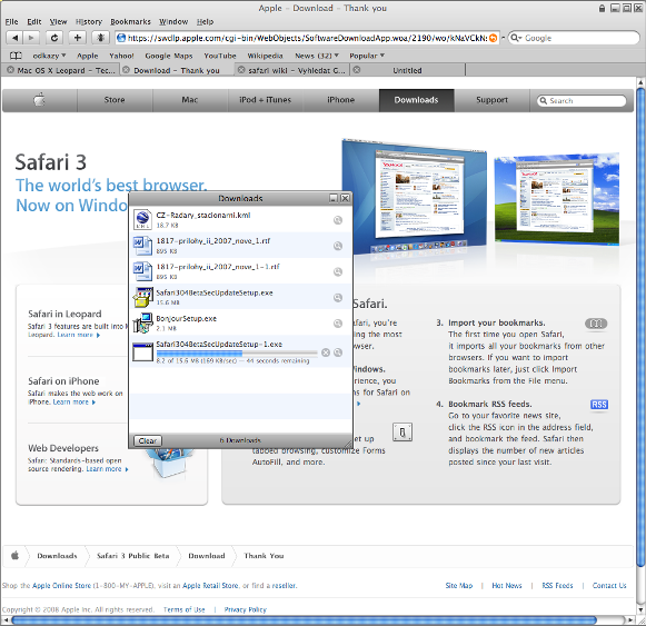 Společnost Apple je v otázce vypuštění finální verze obezřetná, a vzhledem k výše uvedenému je to pochopitelné, jelikož další kritika ze strany uživatelů by mohla být pro budoucnost prohlížeče zásadní. Asi proto je Safari ve verzi 3.0.4 stále ve veřejném beta testování. Předně je nutno uvést, že v době mého testování se objevila inovovaná verze, což potvrzuje neustálý vývoj a opravy chyb, které spočívají především ve vykreslování webových stránek. Dá se tedy předpokládat, že finální verze ještě dozná jistých změn. Co tedy Safari nabízí PC uživatelům již nyní?