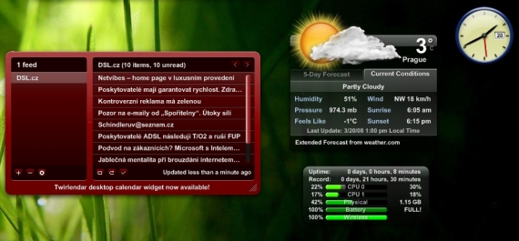 Miniaplikace na pracovní plochu, jež z ní udělají zajímavější místo a ještě vám budou sloužit jako zdroj informací, jsou od základní instalace dostupné jen pro postranní panel Windows Vista. Ovšem „widgets“ už dlouho existují i pro Windows XP a vyvíjí je společnost Yahoo. Dostupný je i zmíněný postranní panel, ale Yahoo Widgets si můžete rozmístit na různá místa plochy ― widgety nejsou na panel pevně vázány.