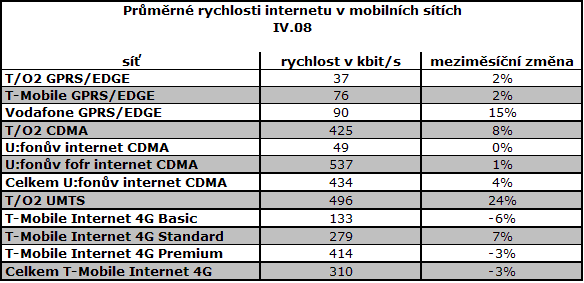 Rychlosti dosahované v mobilních sítích se v posledních měsících příliš nemění u žádné v tabulce uvedených služeb.