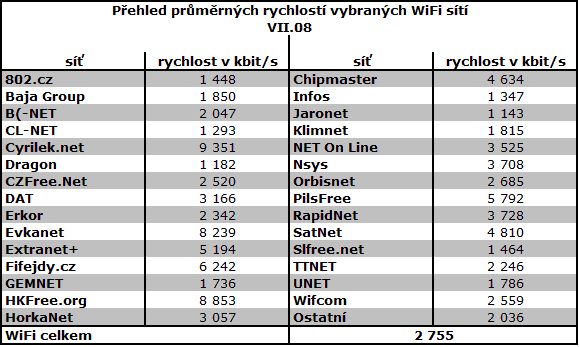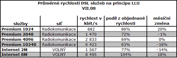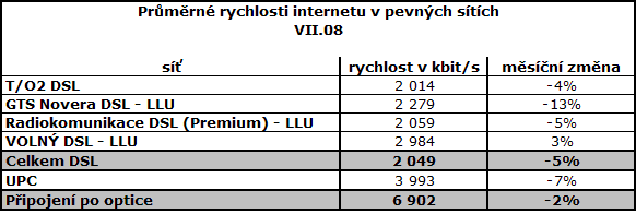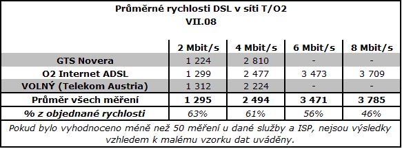 Přehled obsahuje tabulky naměřených rychlostí dle poskytovatelů, služeb a typů internetového připojení. Hodnoty jsou vypočteny z výsledků měření na měřáku rychlosti připojení k internetu na DSL.cz.