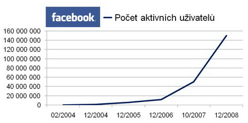 Úspěšnost a stále rostoucí popularita Facebooku je dobře patrná z následujícího grafu, který ukazuje celosvětový nárůst počtu uživatelů od spuštění služby v únoru roku 2004, až na číslo 150 milionů uživatelů na konci roku 2008.