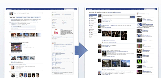 Porovnání původní a nové titulní stránky Facebooku. Zdroj obrázku: AllFacebook.com