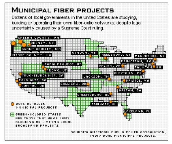 V USA je pro zajímavost kromě UTOPIA řada dalších „městských“ projektů budování optických sítí: