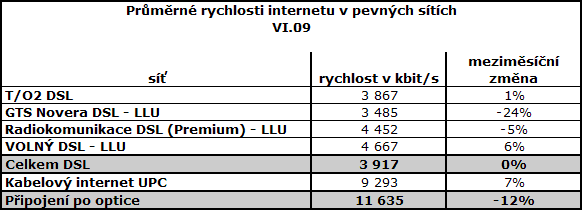 Rekordní průměrné rychlosti - kabelový internet poprvé nad 9 Mbit/s, WiFi poprvé nad 4 Mbit/s a rekordní rychlosti i v sítích 3G a CDMA od O2.