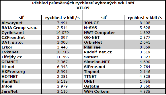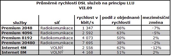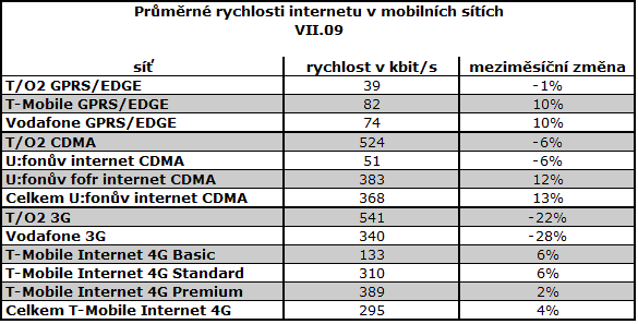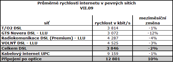 Zlepšení rychlostí u optických připojek, WiFi sítí a u CDMA sítě U:fon. Většina ostatních typů připojení s meziměsíčním poklesem rychlostí.
