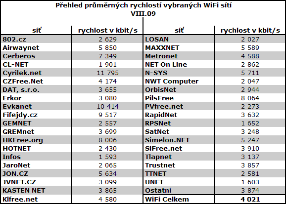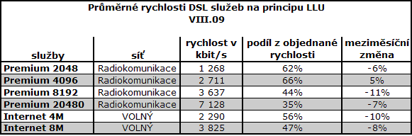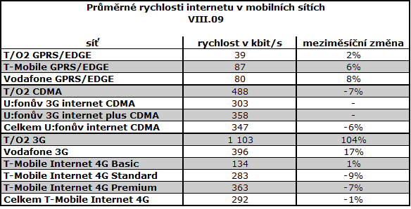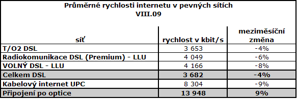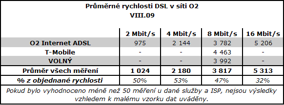 Překvapení přinesly rychlosti 3G sítě O2, které přesáhly 1 Mbit/s. Poprvé zveřejněny rychlosti DSL od T-Mobile. Většina hlavních typů připojení k internetu oproti červenci zpomalila. Výjimkou jsou optické přípojky, které opakovaně zaznamenaly zlepšení.