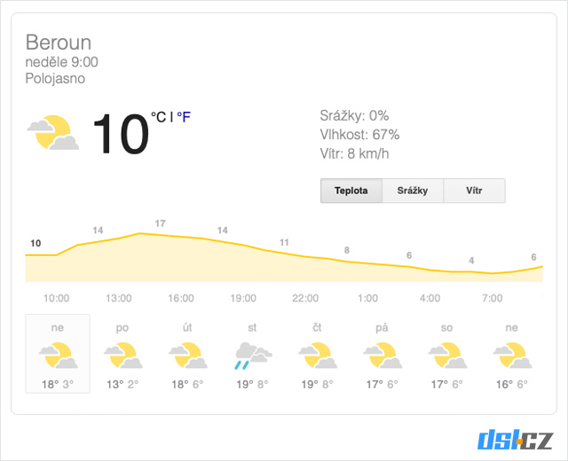 Až budete potřebovat zjistit, jaké je počasí v určité lokalitě, nemusíte otevírat žádnou jinou aplikaci. Prostě vyhledejte weather nebo počasí spolu s městem.
