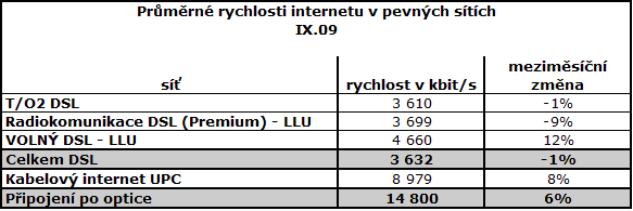 Rekordní rychlosti v CDMA síti O2. Zvýšení rychlosti kabelového internetu a optických přípojek, které se přiblížily průměrné úrovni 15 Mbit/s. Dle počtu měření je podíl počtu optických přípojek v ČR zatím méně než 2%.