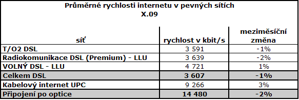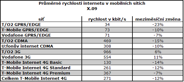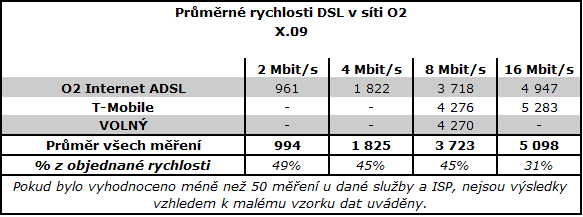3G síť O2 stále nejrychlejším mobilním připojením v ČR, ale citelný pokles rychlostí u CDMA sítě O2. Mírné snížení rychlostí u nejvýznamnějších typů internetového připojení s výjimkou kabelového internetu.