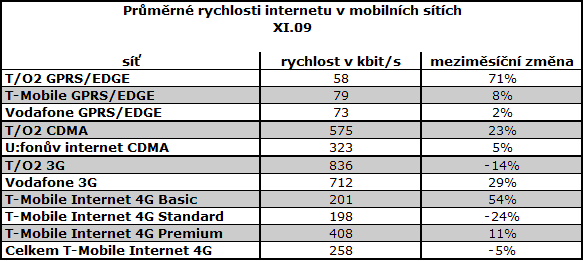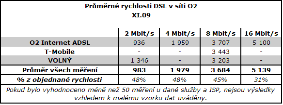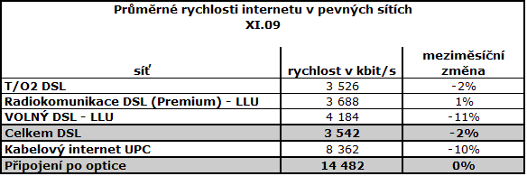 Výrazné zvýšení rychlostí CDMA a GPRS/EDGE sítě O2. Rozdíl v rychlostech CDMA sítí O2 a Ufon se zvětšuje. Pokles rychlostí kabelového internetu. Průměrné rychlosti optiky se stále drží nad 14 Mbit/s.