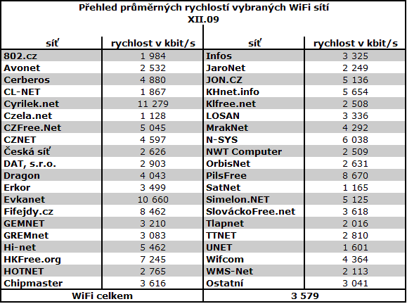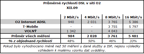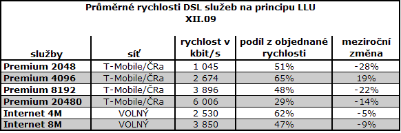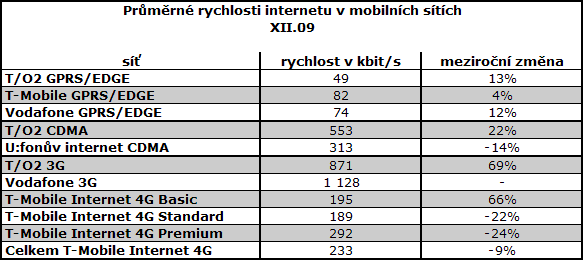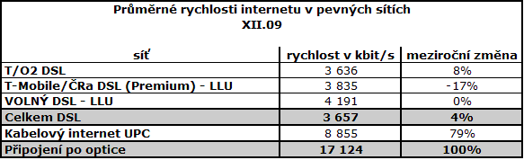 Meziroční srovnání rychlostí internetu ukazuje nárůst o 100% u optických přípojek. Rychlosti kabelového internetu vzrostly o 80%. DSL, WiFi a mobilní internet (s výjimkou 3G sítě O2) výraznější meziroční změny nezaznamenaly.