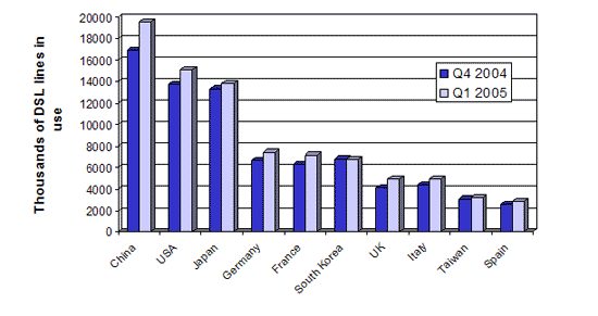 Evropa zaznamenává úspěch, kdy na konci března jako kontinent mírně překonala severní a jižní Ameriku v celkovém počtu širokopásmových přípojkách. Příznivci DSL se také mohou radovat, protože 107 miliónů DSL z celkových 158 miliónů rychlých přípojek na světě jistě hovoří za vše.