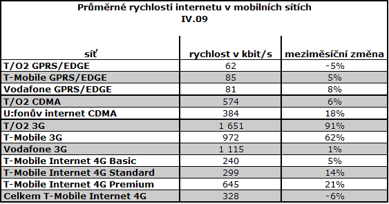 Nárůst u 3G sítí je způsoben zvýšením limitu, nad který jsou měření považována jako platná od 1.4.2010.