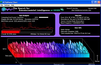 spolumajitel Microsoftu Paul Allen. Ke složitým výpočtům, které jsou spojeny s výzkumem frekvenčních pásem, je zapotřebí obrovský výpočetní výkon. Projekty tohoto typu využívají separovaných výpočtů na uživatelských počítačích. Vše funguje tak, že si stáhnete program, který ze serveru nahraje výpočetní úkol, provede jej (to může trvat minuty, hodiny nebo i dny) a výsledky výpočtů zašle zpět na server. Aby se rozlišilo, který uživatel je lepší a který horší, za jednotlivé vypočítané úlohy dostáváte bodové ohodnocení.