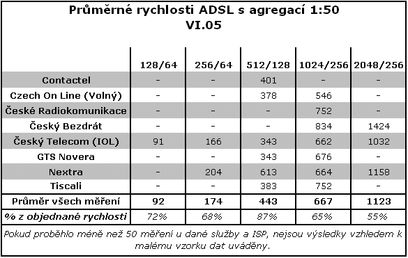 Zajímavý je osud ADSL přípojek s rychlostí 256 kb/s a agregací 1:50.