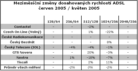 V následující tabulce jsou vidět meziměsíční změny rychlostí pouze u služeb, které byly nabízeny i v měsíci květnu.