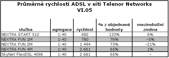 dosahované průměrné rychlosti ADSL. Hlavním důvodem je, že oba největší