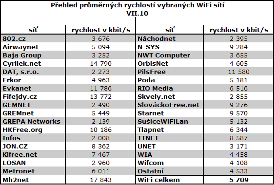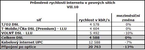 Uvedené rychlosti odpovídají naměřeným hodnotám dosaženým na měřáku internetové rychlosti serveru DSL.cz a poskytnutým údajům o využívaných internetových službách ze strany uživatelů měřáku. Do vyhodnocených měření nejsou zahrnuta měření z IP rozsahů, které neodpovídají uživatelem vybranému poskytovateli a službě. U mobilního připojení k internetu nelze pomocí IP rozsahů provést oddělení GPRS/EDGE a 3G sítě, a proto nemusí být údaje o dosahovaných rychlostech v 3G a GPRS/EDGE sítích mobilních operátorů zcela přesné.