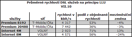Naměřené rychlosti internetu na DSL.cz v červenci 2010