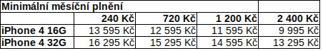 Nový iPhone je prozatím dostupný pouze pro nové a stávající klienty vázané smlouvou na paušál. Dotované ceny, které se odvíjejí od minimálního měsíčního plnění, shrnují následující tabulky.