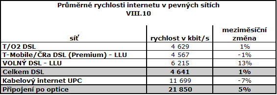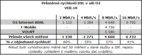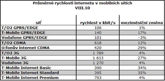 Zvyšování rychlostí mobilního internetu, které se v průměru za všechny služby blíží 1 Mbit/s. Podle počtu měření rychlostí 3G internetu, má stále nejrychlejší O2 více zákazníků než T-Mobile a Vodafone dohromady.