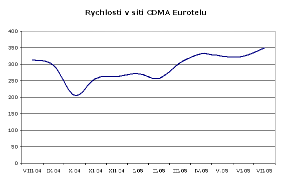 vidět i u dosahovaných rychlostí CDMA v síti Eurotelu. Například v den