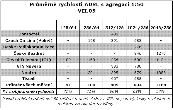 slušných rychlostí. Méně úspěšná polovina ADSL poskytovatelů, kteří