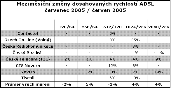 oproti červnu, nedošlo k žádným výrazným změnám v rychlostech