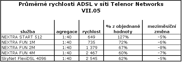 rychlost ADSL v síti Telenor Networks stoupla meziměsíčně o 9%, což je