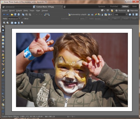Po prvním spuštění vás ZPS vyzve k zadání sériového čísla. To zatím nemáte, takže klepněte na tlačítko Vyzkoušet. Rozhraní funguje podobně jako v internetovém prohlížeči. V horní části se otevírají záložky. Pokud tedy editujete na jedné záložce fotku, na druhé můžete mít správce souborů a na další třeba prohlížeč. Mezi jednotlivými režimy se přepínáte vpravo nahoře. Dále je nahoře přítomno menu, pod kterým naleznete ikony exportních funkcí, vpravo jsou umístěny ikony rychlých editačních funkcí.