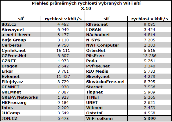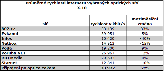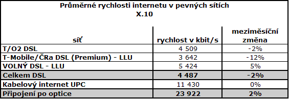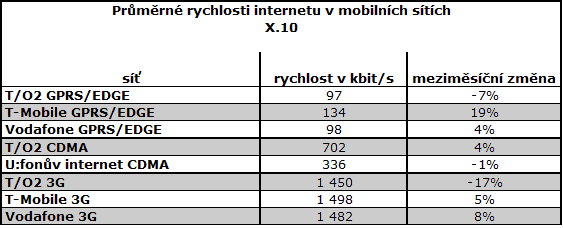 Rychlosti 3G sítí mobilních operátorů Vodafone a T-Mobile dohánějí O2. Pokračující zvyšování rychlostí internetu po optice. WiFi v průměru o 1 Mbit/s rychlejší oproti DSL.