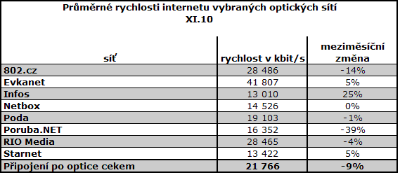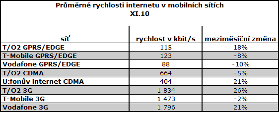 Zlepšení rychlostí mobilního internetu. U 3G přípojení O2 opět nejrychlejší s největším počtem měření. Výrazné zvýšení rychlostí 3G sítě Vodafonu a CDMA sítě U:fon. Historicky nejvyšší počet měření rychlosti internetu po optice.