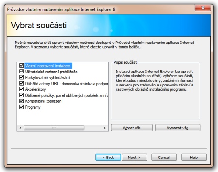 Jak jsem již avizoval v úvodu článku, Microsoft nabízí pro kustomizaci vlastního prohlížeče jednoduchý nástroj s názvem IEAK. Pod touto tajuplnou zkratkou se ukrývá název Internet Explorer Administration Kit. Funkce programu se liší s ohledem na licenci zvolenou při instalaci programu. Ve své podstatě jde o jednoduchého průvodce v českém jazyce, který vás pomocí několika kroků provede nastavením prohlížeče a vytvořením vlastního modifikovaného instalačního souboru. Detailní srovnání funkcí IEAK naleznete přímo na webu Microsoftu.