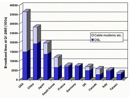 Obrázek: Podíl DSL přípojek v 10 zemích světa s největším počtem rychlých přípojek