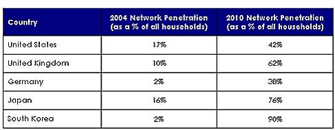 Podle Strategy Analyticsmá penetrace širokopásmových přípojek v západní Evropě v roce 2010 dosáhnout už 63 % (93 % z celkového počtu rychlých přípojek vůbec). V letošním roce má být z hlediska penetrace na tom nejlépe Holandsko s 56 % a nejhůře Německo s pouhými 24% domácností s širokopásmovou přípojkou (na vině je prakticky neexistující konkurence k dominantnímu provozovateli).