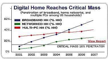 Průzkumy se předhánějí v odhadech růstu počtu širokopásmových přípojek v domácnostech v následujících pěti letech. Triple play, domácí brány a zábavní obsah, to vše bude přispívat také k rozvoji domácích sítí.
