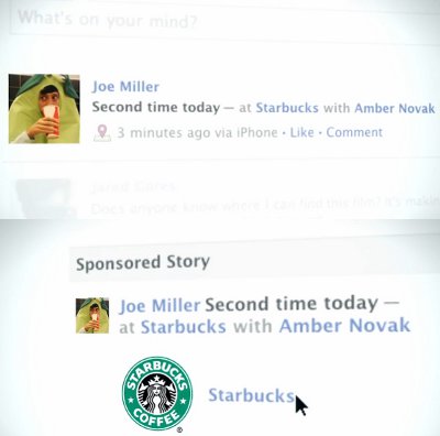 Zaměstnanci Facebooku na něm uvádějí modelový příklad: jdete s kamarádem na kávu, zde konkrétně do Starbucks. Přes mobil o tom statusem na Facebooku informujete své známé. "Jsem na kafi ve Starbucks." Vaše zpráva se neobjeví jen na vaší zdi, ale také ve sloupci s reklamou. Znít bude zcela stejně: "Jsem na kafi ve Starbucks," vedle ní bude vaše fotka a pod zprávou pak logo firmy Starbucks a odkaz na její stránku.