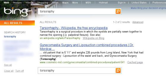 A Bing zanedlouho začal vracet stejné výsledky jako Google. Ale opravu slova nenabídl. "To bylo divné. Jak mohl Bing vracet naše nejvýše postavené výsledky bez správného zadání slova [tarsorrhaphy]? Kdyby Bing znal správné zadání slova, mohl vrátit několik dalších relevantních výsledků." Jenomže to se nestalo. Bing zobrazoval pouze výsledky, které se objevily na prvních místech ve výsledcích z Googlu.