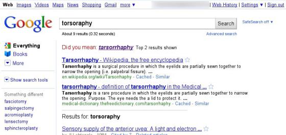 Lidé z Googlu si loni v létě všimli, že Bing například nedává žádné výsledky při zadání slova "torsorophy", což je špatně napsané slovo "tarsorrhaphy". Google ale vracel výsledky odpovídající správně napsanému slovu -- a také překlepy opravil.