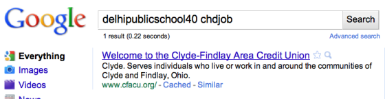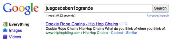 Po zadání nesmyslného textu tedy vyhledávač vracel odkaz na takovou webovou stránku, viz obrázek níže.