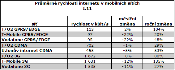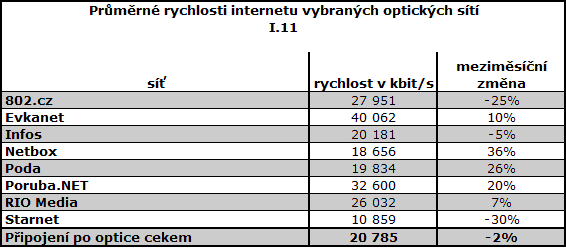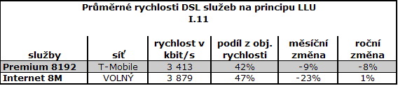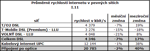 Oproti prosinci došlo u většiny služeb ke snížení průměrných rychlostí. V průměru nejrychlejší DSL i mobilní internet má Telefónica O2.