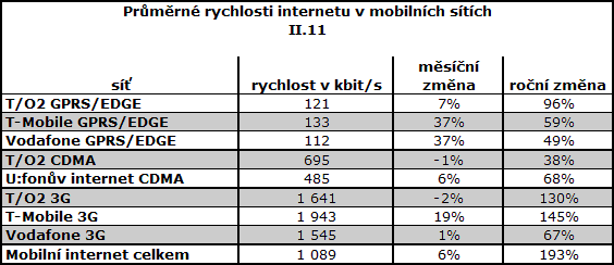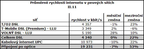 Rychlosti DSL od O2 opět významně vyšší než u T-Mobile. Další zvýšení rychlostí mobilního internetu. Nejrychlejší T-Mobile má dle počtu měření pravděpodobně nižší počet klientů s mobilním internetem než oba konkurenční operátoři.