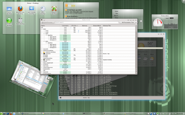 Voilá – systém lítá jako z praku, že mu to může závidět kdejaký silnější počítač s Windows Vista či Windows 7. Na netbooku je openSUSE s KDE 4 viditelně svižnější než Ubuntu (s GNOME) a práce je s ním je opravdu velice příjemná. (Svižně se systém chová i na prvních typech netbooků s pomalými SSD, což je něco neuvěřitelného.)