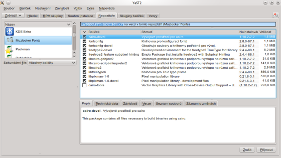 Tím to však nekončí. Za druhé, patrně kvůli patentovým omezením písma v openSUSE neobsahují určité vykreslovací technologie, které na displejích zaručují ještě lepší čitelnost. To lze vyřešit instalací externího balíku freetype a přidružených knihoven, které se o vykreslování TrueType fontů starají.