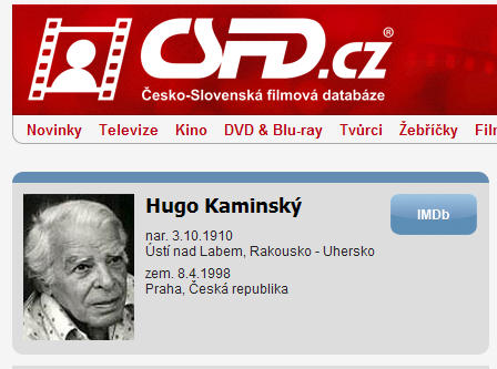 Pokud chcete důkaz, porovnejte fotku u herce Hugo Kaminského na IMDb a na ČSFD. Je stejná. Problém je, že Hugo Kaminský byl dědečkem již zmíněného Aleše Vykypěla, tato jediná fotka pochází z jeho archivu a byla umístěna jen a pouze na IMDb (nyní je dostupná v Pro sekci).