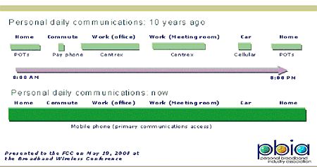 Podle sdružení PBCI (Personal Broadband Industry Association) dochází k postupnému přechodu od hlasové komunikace po pevných sítích směrem k tzv. osobní komunikaci realizované především mobilním telefonem:
