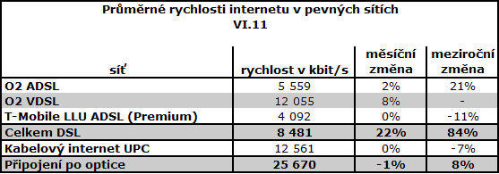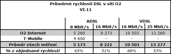 VDSL a překvapivě i ADSL od O2 nadále zrychlují. 3G od T-Mobile poprvé s výraznějším poklesem, ale stále zůstává nejrychlejší.